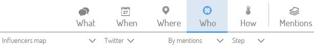 The Influencers Map can be found in the dropdown menu, located in the "Who" tab, within the Listening module.