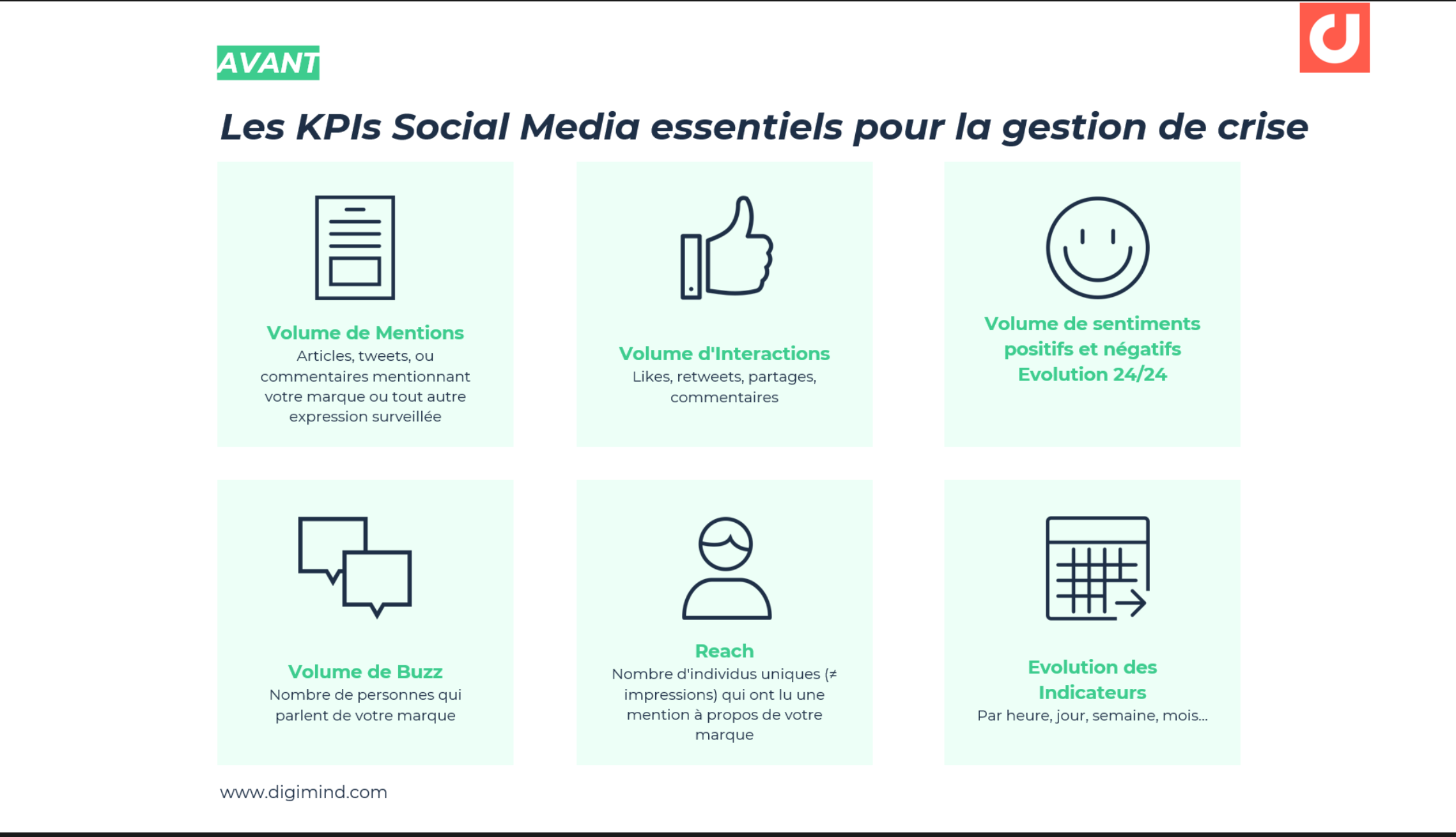 Ces indicateurs doivent vous permettre d’évaluer la gravité de la crise sur le web et les réseaux sociaux afin d’éviter de sur-réagir ou, à l’inverse, de ne pas réagir assez tôt et de manière adaptée.