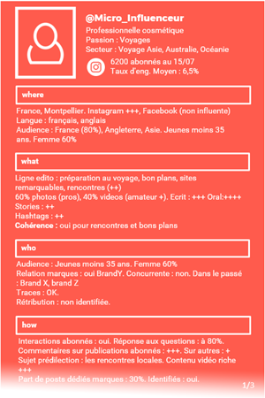 - Présentez ce que va être concrètement la relation : mode de management, possibilité d'ajustement, de cadrage, quel degré d’autonomie (c'est important !) ou non de l’influenceur dans ses messages et son contenu, le mode et le temps de validation...