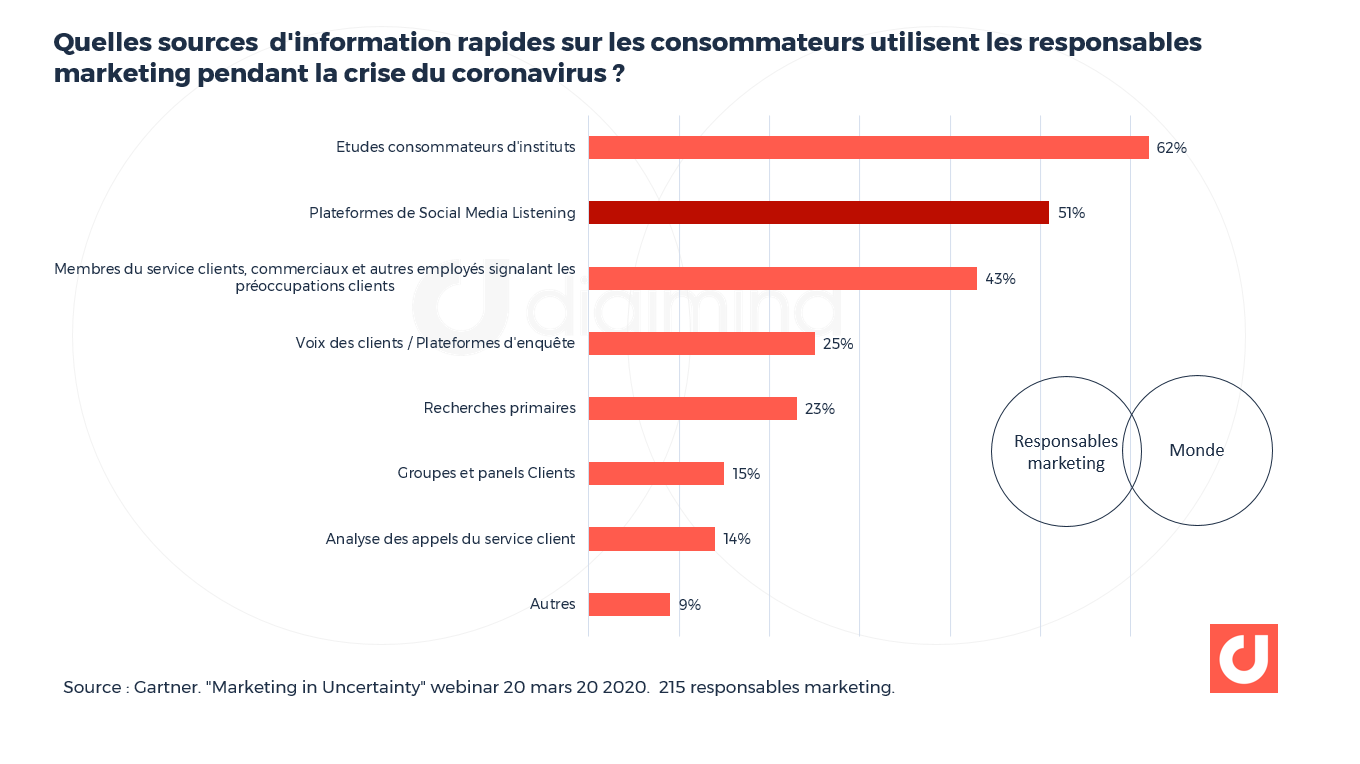 a. Gartner : "Marketing in Uncertainty" webinar du 20 mars 2020 . Etude citée sur 215 responsables marketing https://blogs.gartner.com/augie-ray/2020/03/24/marketers-deploy-customer-listening-covid-19-pandemic/