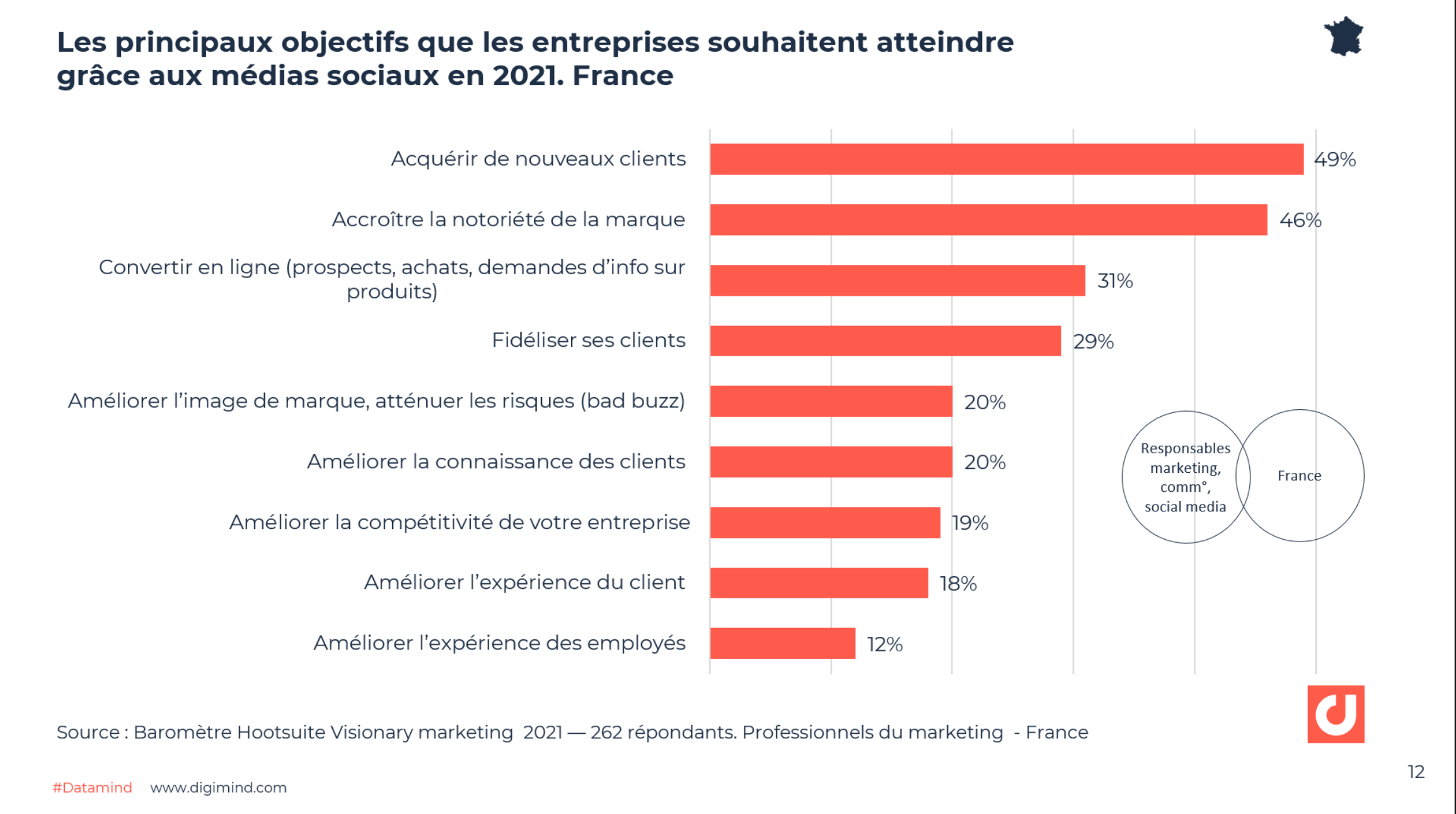 Les principaux objectifs que les entreprises souhaitent atteindre grâce aux médias sociaux en 2021. France