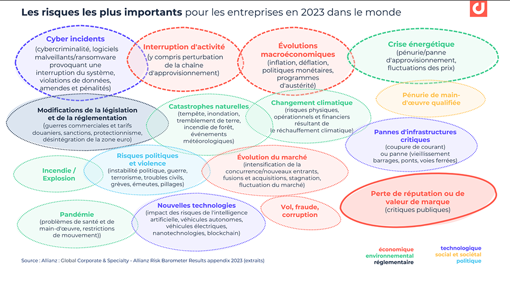 Les risques les plus importants pour les entreprises en 2023 dans le monde (Allianz)