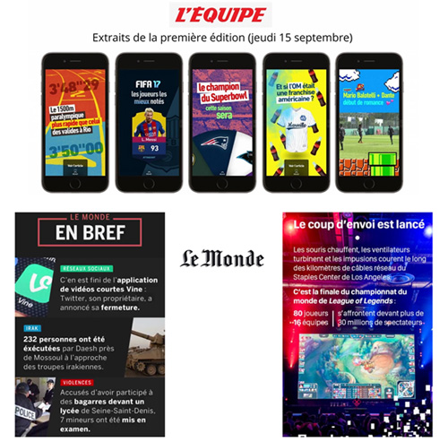 Ainsi, au journal Le Monde, l'équipe de 7 personnes dédiées à Snapchat Discover est composée d'un chef d'édition, de deux journalistes-rédacteurs, de deux journalistes-vidéos et de deux motion designers.