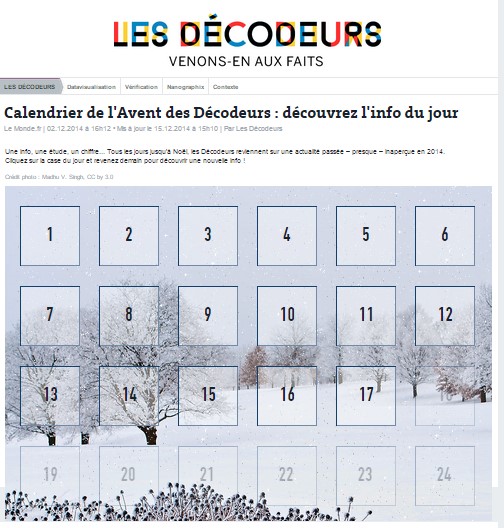Si les sites de news ne représentent que 1% des mentions, ils captent en revanche 19% de l’audience potentielle. Alors que pour certains sites d’actualités, le calendrier de l’avent est un marronnier qui leur donne l'occasion de consacrer un billet ou de présenter les nouveautés, pour d’autres c’est l’occasion de convier le public à un rendez-vous quotidien. A raison d’une mention par jour, par exemple, Le Monde nous fait découvrir une information.