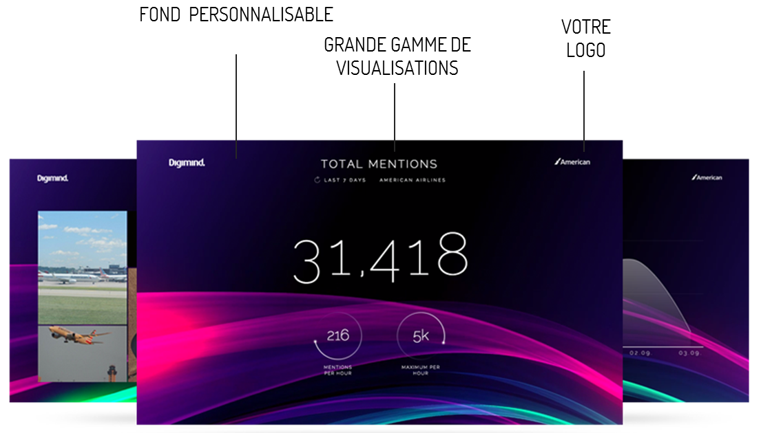 Les Social Media Commande Center Digimind sont entièrement paramétrable : vous choisissez vos sujets et vos types de visualisations.