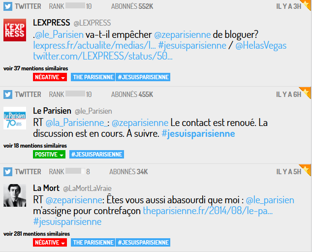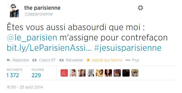 Et puis aujourd'hui, Numerama publie l'article "Le Parisien attaque en contrefaçon le blog The Parisienne". Le Plus du Nouvel Obs publie un billet, LeMonde aussi comme L'Express. Et Le Parisien réagit à J+1