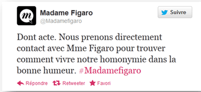 "La blogueuse s’appuie sur un article (L713-6) du code de la propriété intellectuelle. Pour elle, pas de confusion possible entre son blog et le site Madame.LeFigaro.fr.