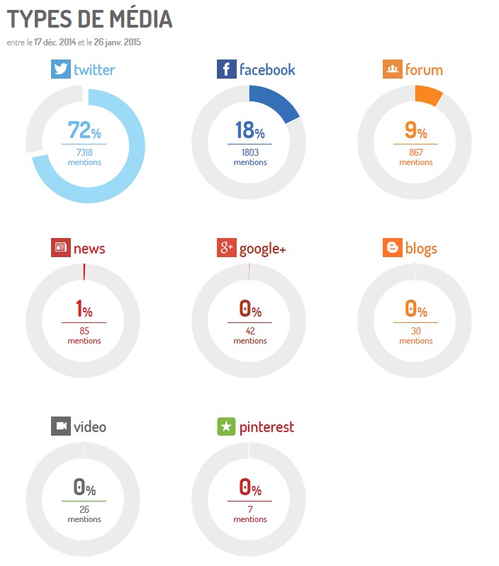 90% des mentions concernant Meetic sont émises depuis les réseaux sociaux ! En effet, les sites de news délaissent le site de rencontres et ne s’intéressent pas à sa nouvelle campagne publicitaire. Les 85 articles de la presse en ligne utilisent principalement « Meetic » comme antonomase ou cite son fondateur, Marc Simoncini comme investisseur de différents projets. Finalement, peu de ces articles sont véritablement dédiés à Meetic, mais ils sont très visibles : s’ils représentent 1% du total des mentions, ils en captent 50% de l’audience. En revanche, l’ensemble de ces articles de news sont massivement relayés sur les réseaux sociaux et notamment sur Twitter, à l’instar des publications consacrées au « Meetic pour les vaches ». Nombre de mentions sur Twitter alimentent la tribune des internautes qui dénoncent la dérive des tweetos à y chercher l’amour. Enfin, les forums (Comment Ca Marche et Game Kult principalement) s’imposent en troisième position avec 9% des mentions. Ce sont des conversations autour de promotions à la souscription sur le site internet ou concernant les virus publicitaires. C’est également une plateforme privilégiée des internautes pour échanger sur leurs vies amoureuses.