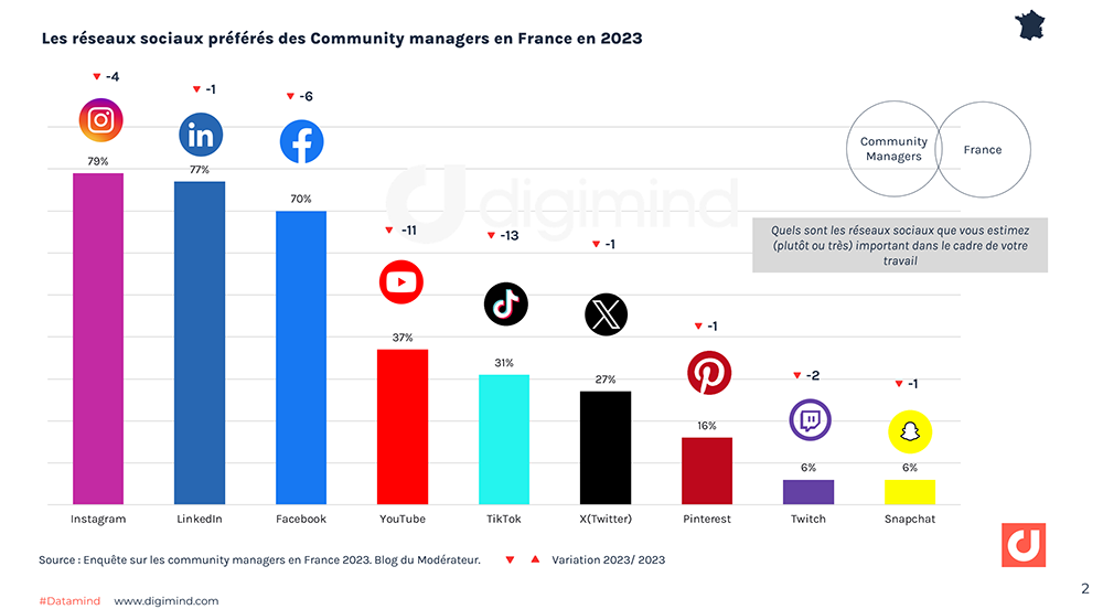 Les réseaux sociaux préférés des Community managers en France en 2023