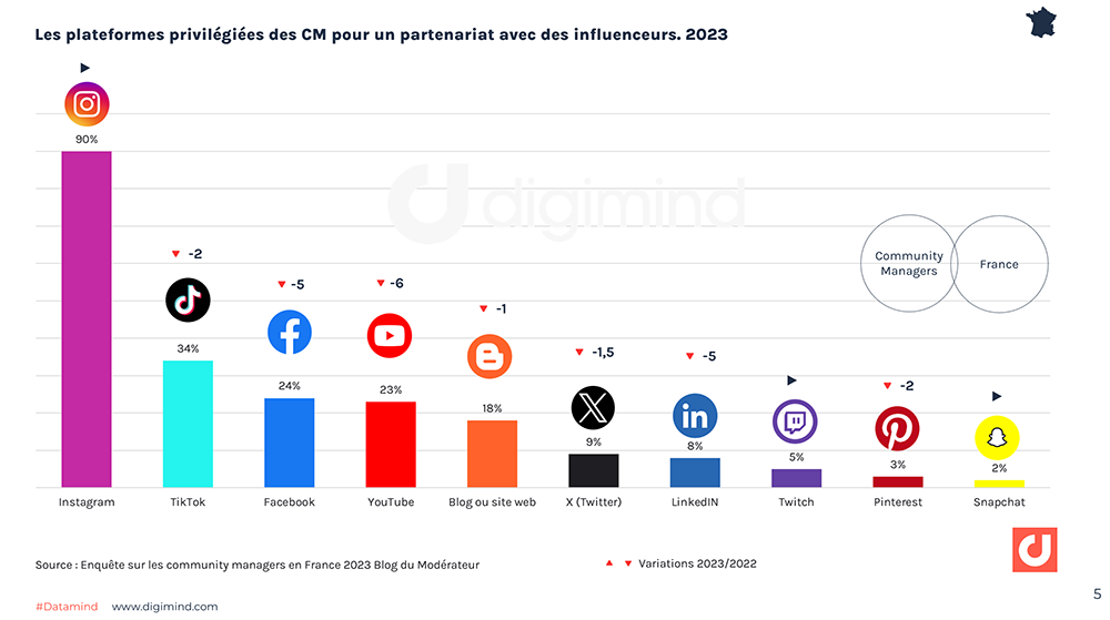 Les réseaux préférés des CM pour les partenariats avec les influenceurs en 2023