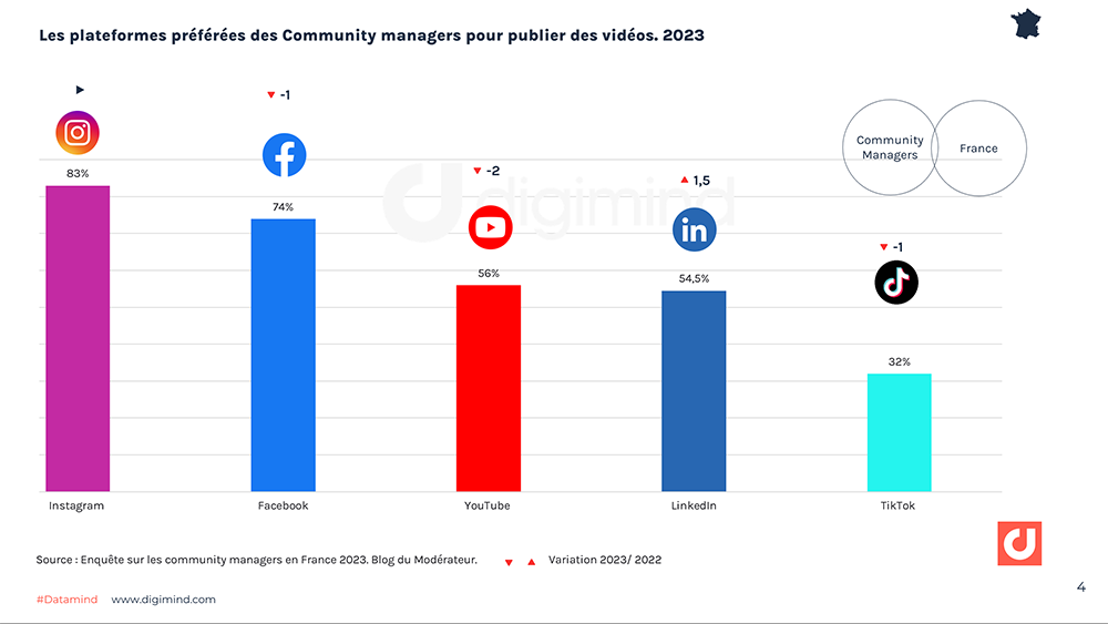 Les réseaux sociaux favoris préférées des Community managers pour publier des vidéos. 2023