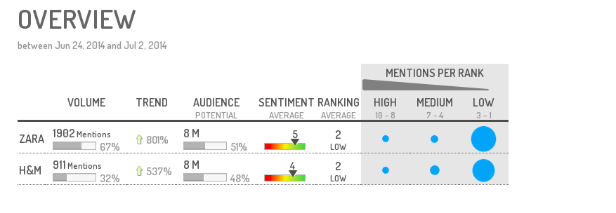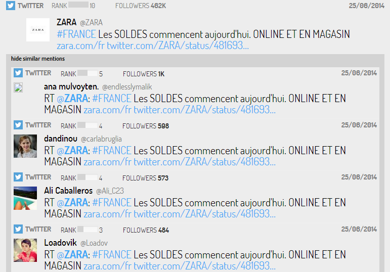 Les soldes d'été 2014 ont débuté il y a précisément 7 jours. Nous avons configuré en quelques clics Digimind Social, notre outil de Social Media Monitoring, afin de participer à ce coup d'envoi sur les réseaux sociaux... à l'abri de la foule, loin du rush de l'ouverture, pour deux grandes enseignes du prêt-à-porter en France : H&M et Zara.