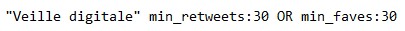 Ex : Pour une recherche sur le domaine de la veille digitale ciblant des tweets ayant été retweetés ou mis en favoris au moins 30 fois :